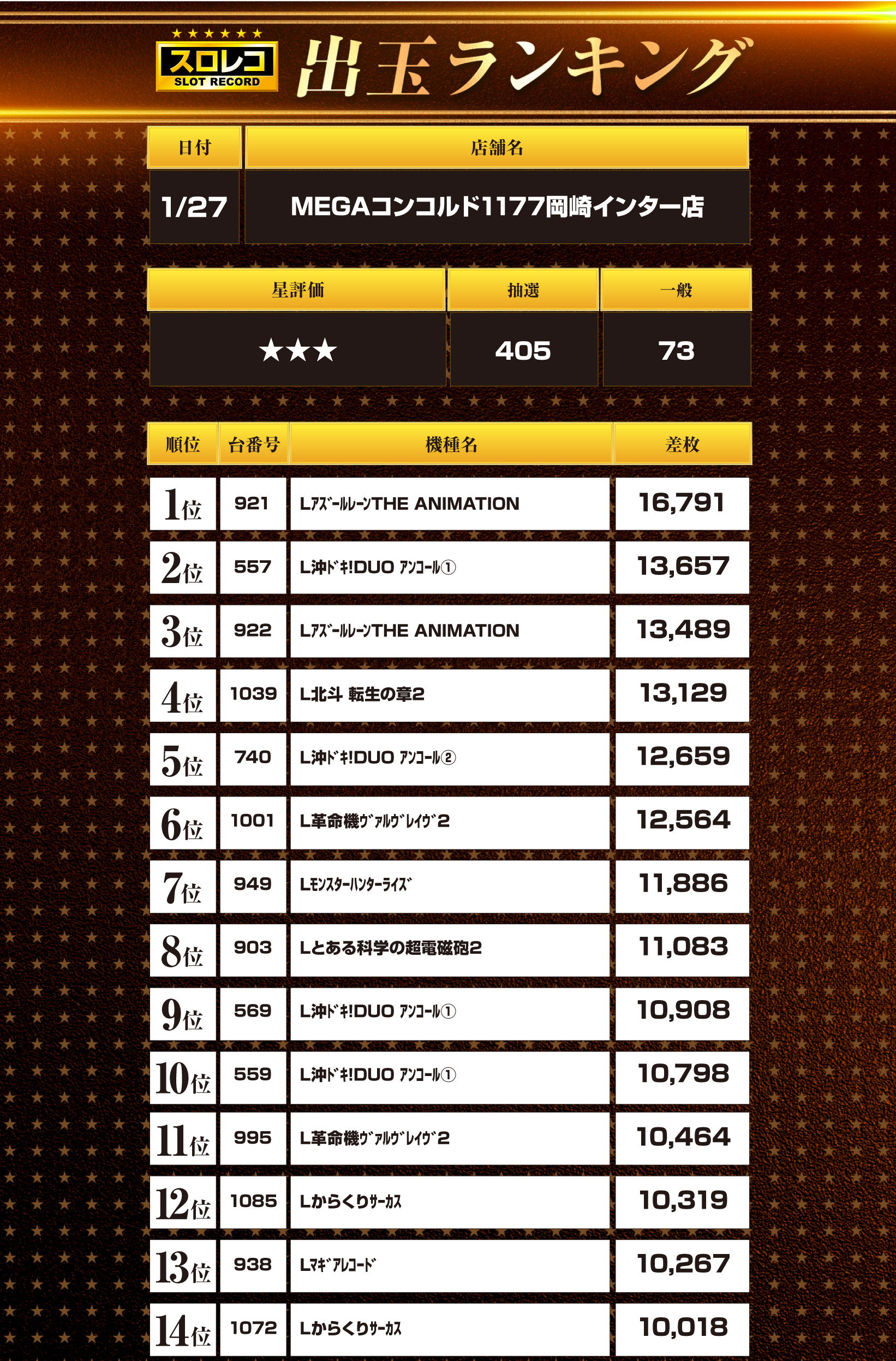 01月27日(火) 伝説の刻 MEGAコンコルド1177岡崎インター店
