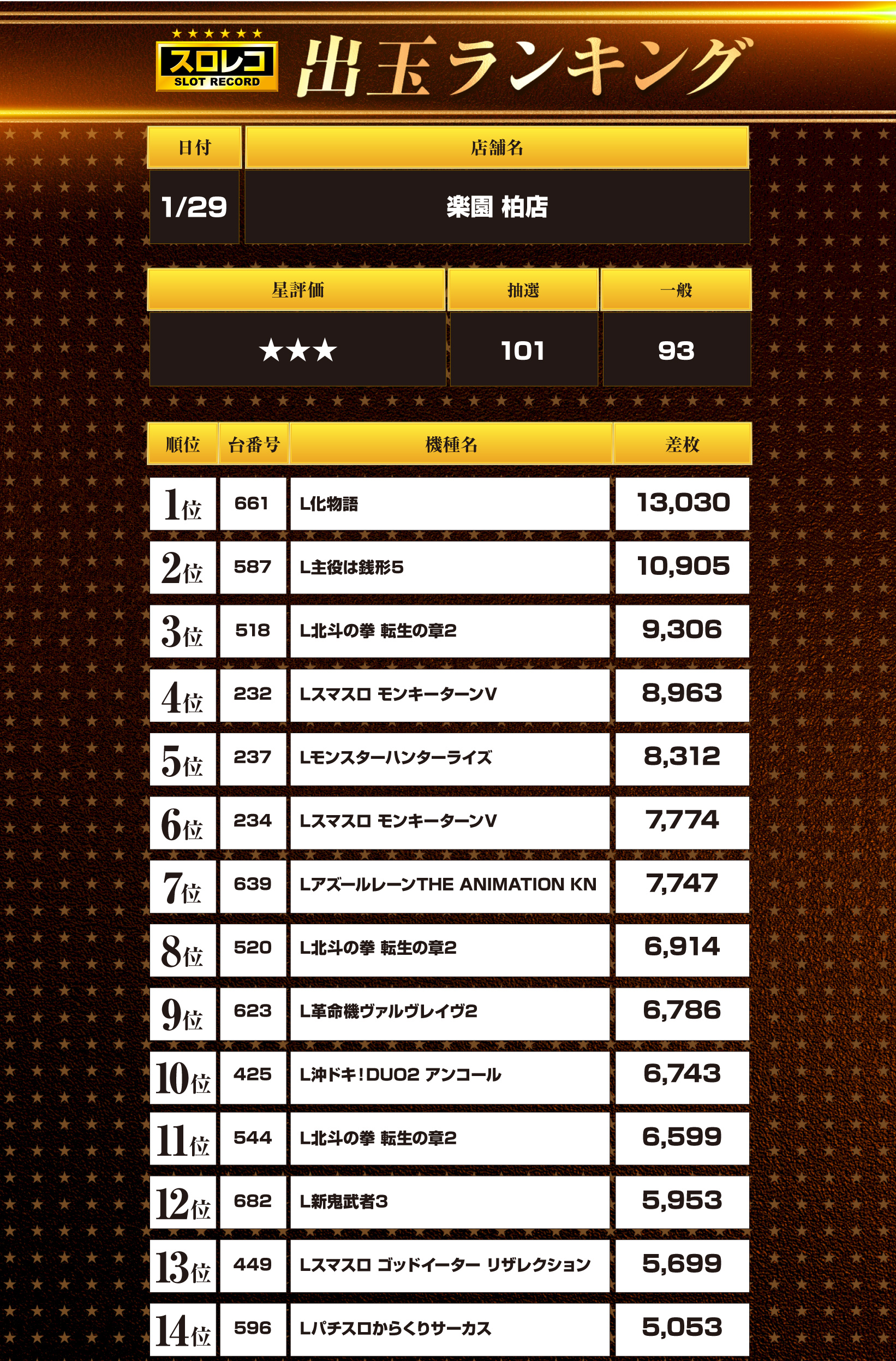 1月29日 楽園 柏店