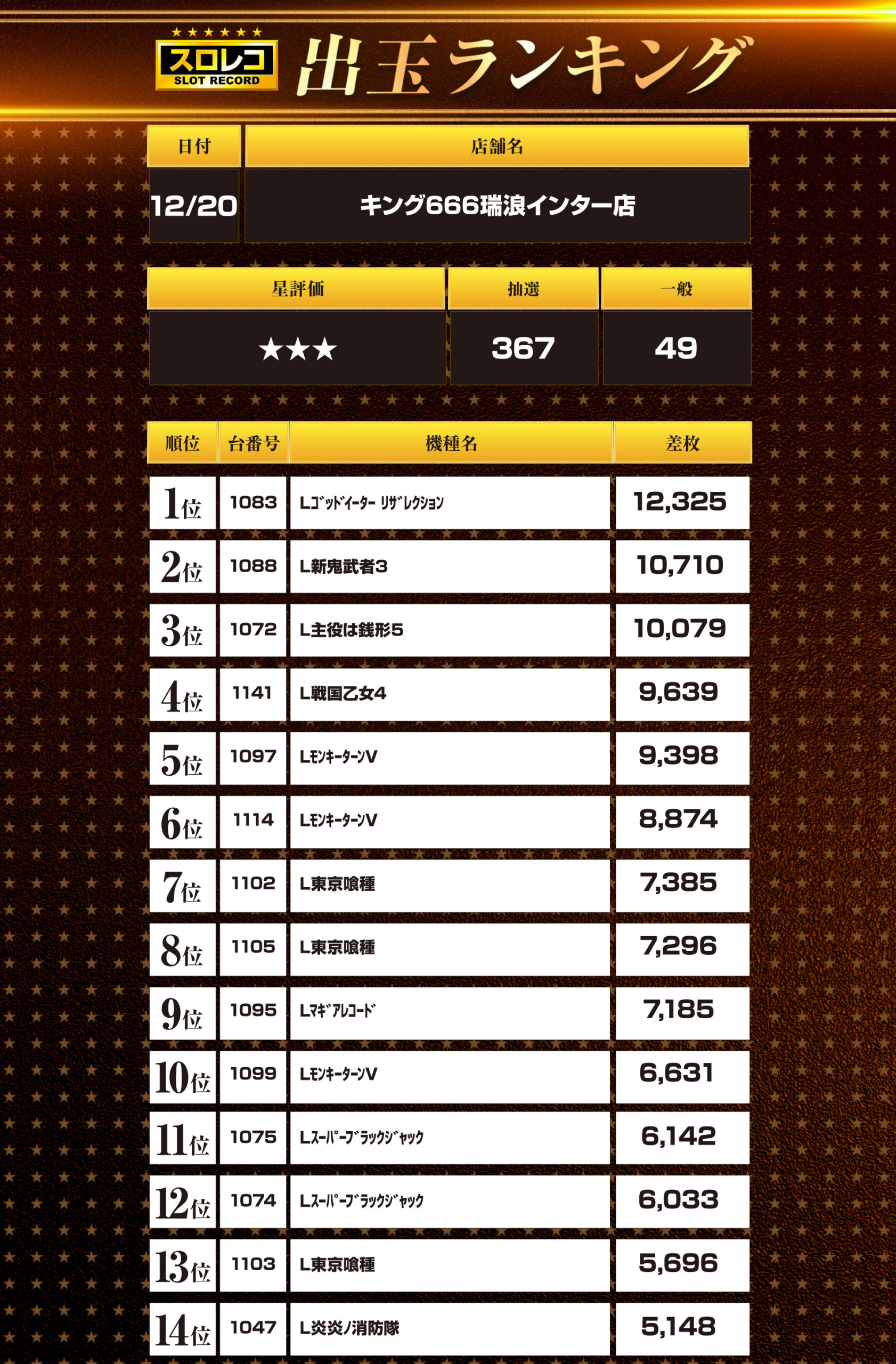 12月20日 キング666瑞浪インター店
