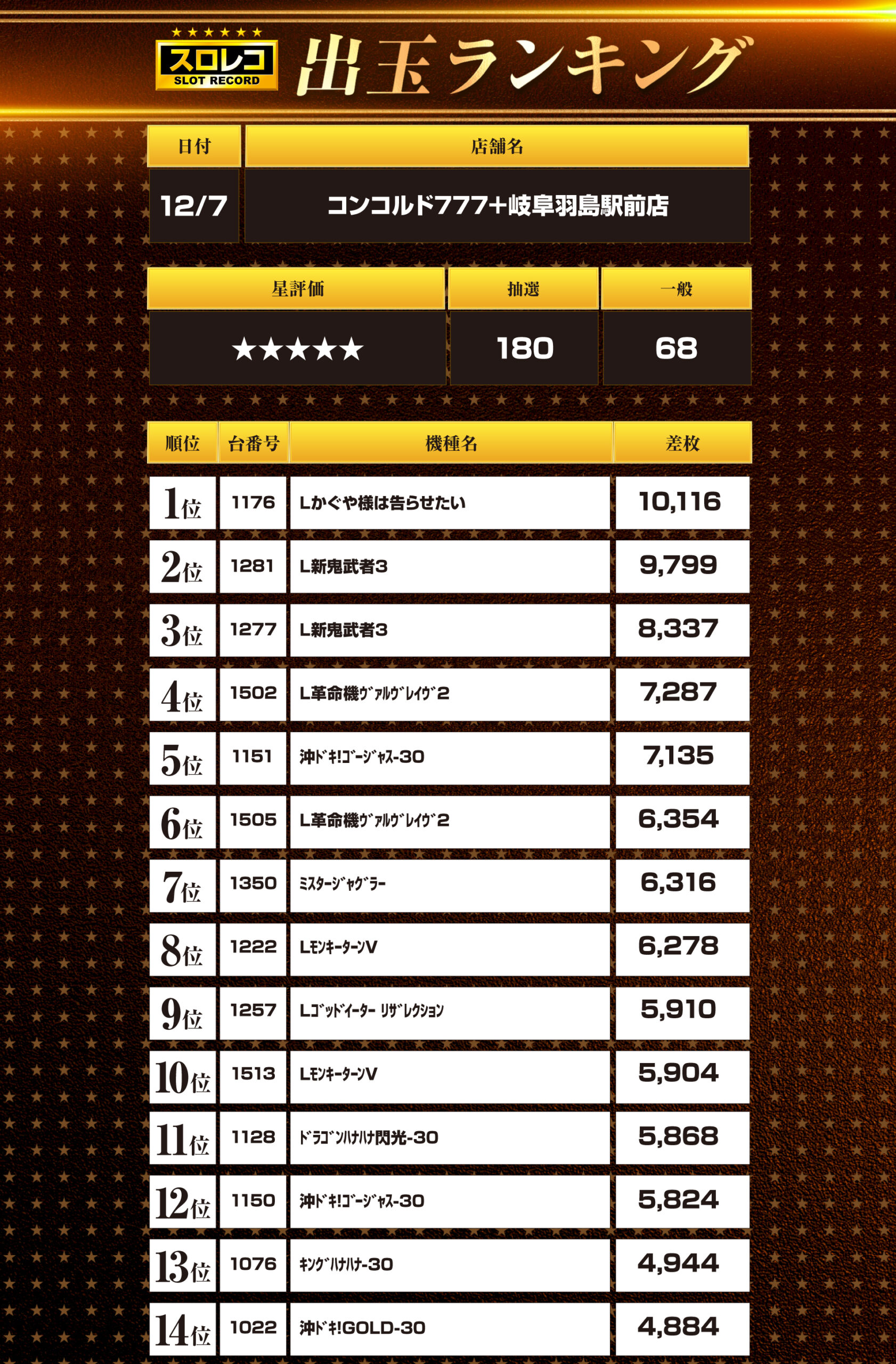 12月07日(日) 伝説の刻 コンコルド777+岐阜羽島駅前店