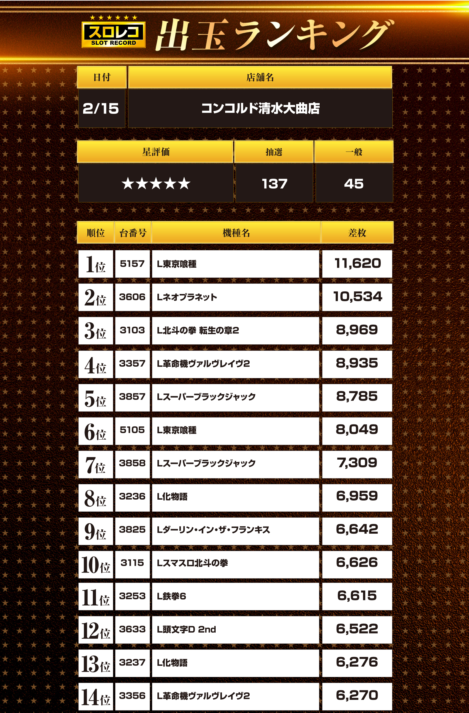 02月15日(日) 伝説の刻 コンコルド清水大曲店