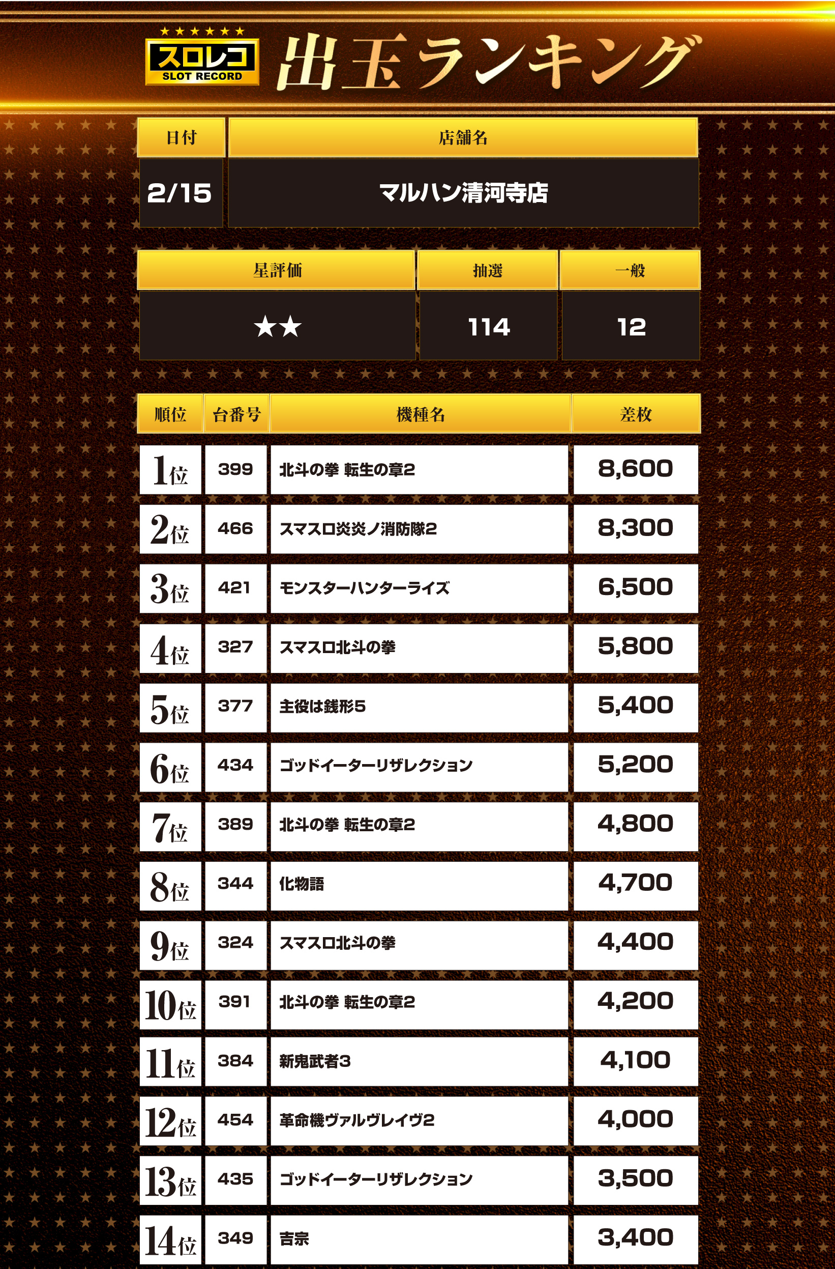 02月15日(日) 伝説の刻 マルハン清河寺店